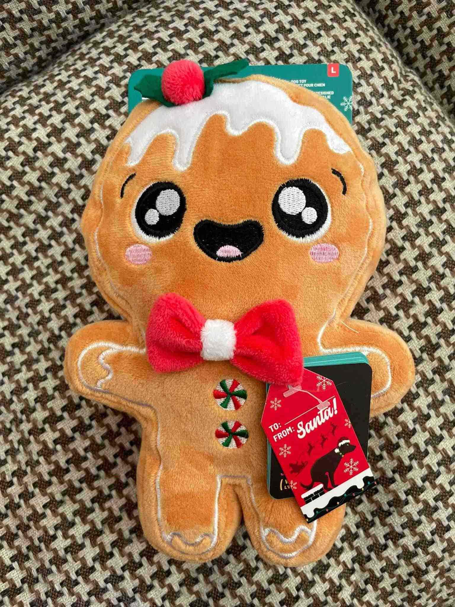 Ce petit bonhomme pain d’épices va vite devenir le copain préféré de ton chien ! Avec son grand sourire et ses couleurs de fête, il est aussi mignon qu’agréable à câliner.