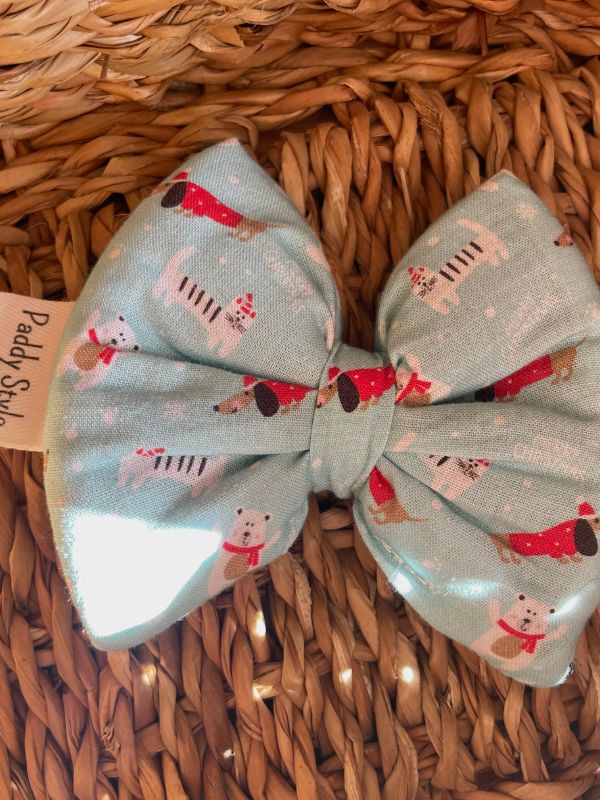 Nœud Papillon Bleu Clair Motif Teckel de Noël – Accessoire Chic pour Chien saucisse.