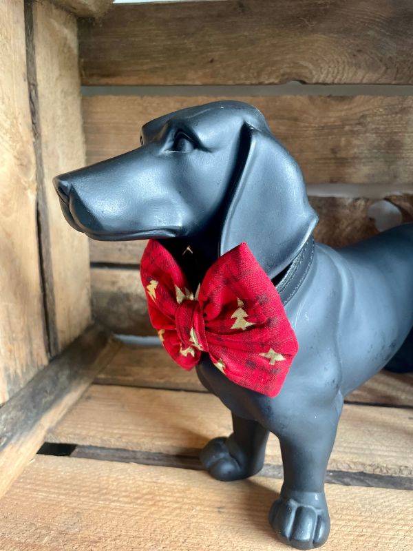 Nœud Papillon pour collier chien, motif Rouge tartan de Noël – Accessoire pour chien : Élégant et Festif