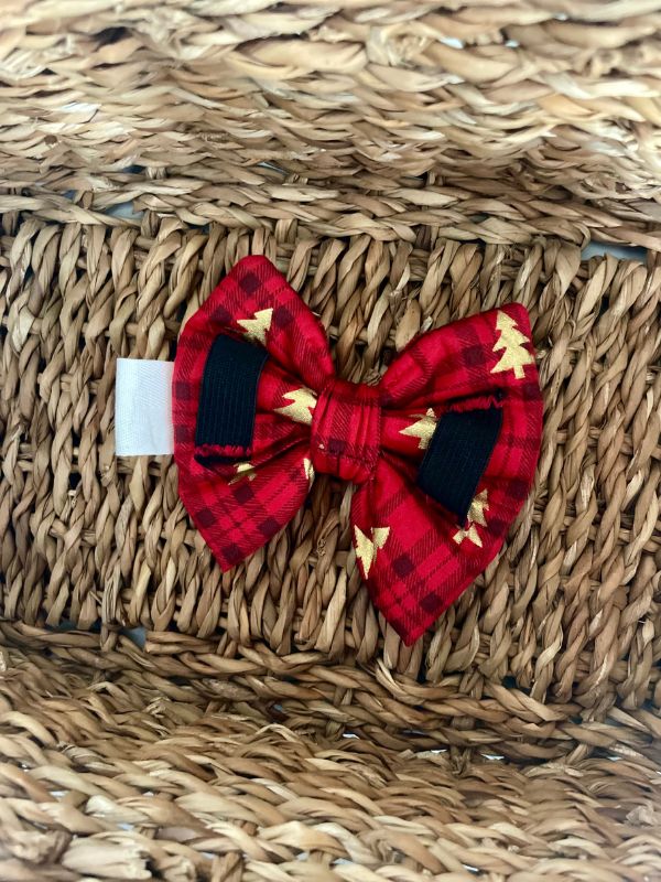 Faites briller votre chien avec notre nœud papillon rouge au motif sapin de Noël 🎄 ! Cet accessoire pour le collier de votre chien se fixe facilement sur le collier grâce à deux élastiques discrets et confortable pour votre chien.  Cet accessoire pour chien fait main, offre un look raffiné et un esprit festif à votre chien, pour la saison des fêtes.